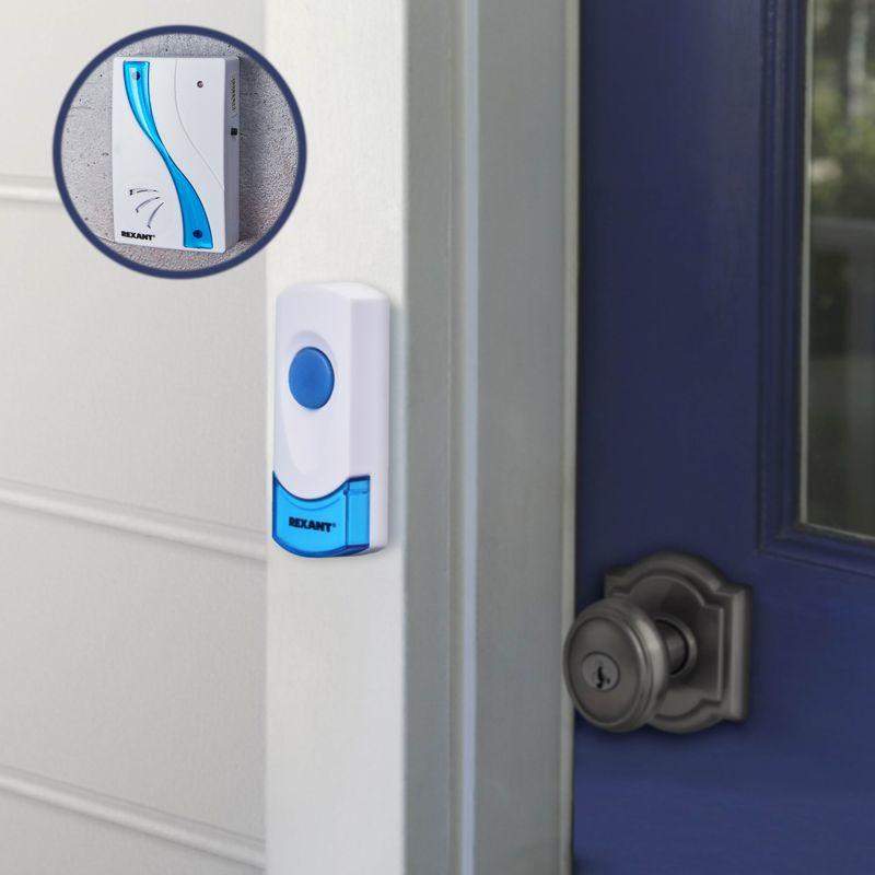 Беспроводной дверной звонок предназначен для подачи звукового сигнала в жилых, служебных и общественных помещениях. Комплект состоит из двух элементов: передающего устройства (кнопки вызова) и принимающего (динамика). Звонок обеспечивает беспроводное управление на расстоянии до 100 м, что позволяет удобно использовать его в различных зонах. Устройство поддерживает выбор из 32 мелодий, которые можно настроить в зависимости от предпочтений. Приемник оснащен светодиодным индикатором, который помогает контролировать рабочее состояние устройства. Кнопка вызова имеет степень защиты IP44, поэтому подходит для использования на улице или в условиях повышенной влажности. Динамик и кнопка вызова питаются от батареек – это исключает необходимость подключения к электрической сети и упрощает монтаж.