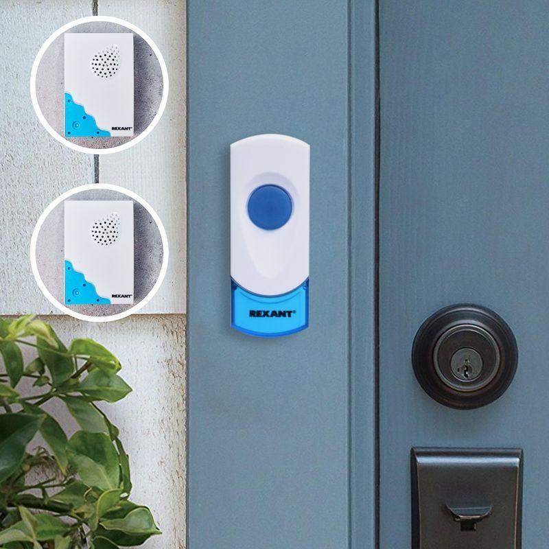 Беспроводной дверной звонок предназначен для подачи звукового сигнала в жилых, служебных и общественных помещениях. Комплект состоит из передающего устройства (кнопки вызова) и двух принимающих (динамиков), что расширяет сферу применения устройства. Звонок обеспечивает беспроводное управление на расстоянии до 100 м, что позволяет удобно использовать его в различных зонах. Устройство поддерживает выбор из 32 мелодий, которые можно настроить в зависимости от предпочтений. Приемники оснащены светодиодным индикатором, который помогает контролировать рабочее состояние устройств. Кнопка вызова имеет степень защиты IP44, поэтому подходит для использования на улице или в условиях повышенной влажности. Динамики и кнопка вызова питаются от батареек, что исключает необходимость подключения к электрической сети и упрощает монтаж.