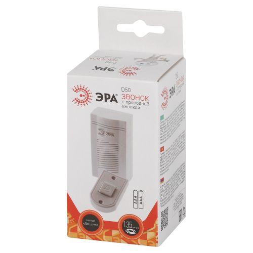 ЭРА D50 - проводной электрозвонок с полифонической мелодией. Динамик работает от 2 мизинчиковых батареек (2 х ААА) и отличается оптимальной громкостью. Длина провода, соединяющего кнопку и динамик - 1,35 м. Корпус изготовлен из легкого прочного пластика базового белого цвета. Электрозвонок ЭРА универсален для любого интерьера. Прост в установке и удобен в использовании.