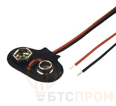 Клемма на «Крону» (угловая) REXANT предназначена для подключения питания к измерительному инструменту, различным пультам дистанционного управления, бытовым устройствам (радиоприемники, телефонные аппараты), радиоуправляемым моделям и другой электротехнике, имеющей совместимые по форме контакты типа «Крона». Клемма состоит из контактной группы и двух изолированных многожильных проводов длиной 15 см, подготовленных (окончания зачищены и облужены оловом) к использованию. Сечение жилы проводника составляет 0.3 мм. Особенность угловой клеммы заключается в том, что для удобства эксплуатации провода подходят к середине контактной группы.