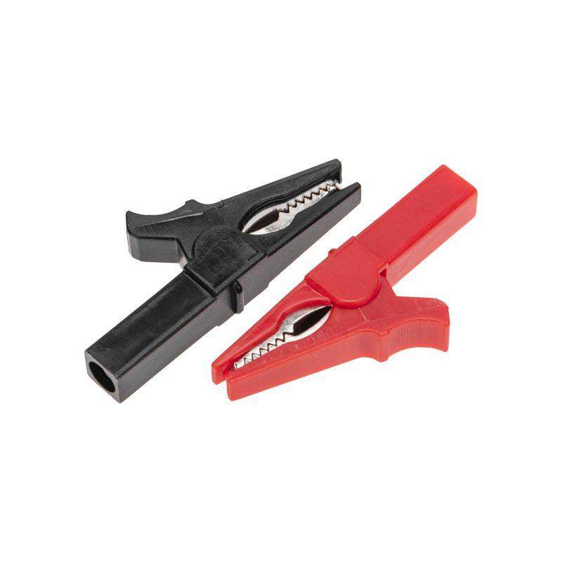Зажим «крокодил» – это электромеханическое устройство, предназначенное для оперативного соединения или разъединения контакта проводов при выполнении измерительных работ или при монтаже электрических и слаботочных сетей. Зажим состоит из двух деталей с зубцами, которые в середине скреплены специальным штифтом и могут вращаться вокруг оси соединения под определенным углом. К одной из деталей через разъем Banana диаметром 4 мм монтируется контактный провод, оснащенный соответствующим штекером. Данный вид разъема является одним из самых популярных соединителей в электротехнике, который подходит к большинству мультиметров. Сжатие частей обеспечивается пружиной, вставленной с другой стороны штифта. Контактная часть зажима изготавливается из стали с никелированным покрытием. Для обеспечения безопасного использования предусмотрена изоляция из ПВХ, которая исключает случайный контакт с другими токоведущими частями и защищает от поражения электрическим током. Цена указана за штуку. В упаковке поставляется 2 зажима (1 красный и 1 черный). Минимальная партия отгрузки – 10 упаковок.