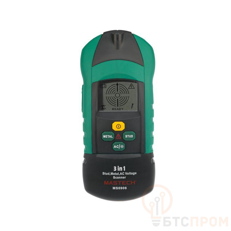 MASTECH MS 6906 — это многофункциональный прибор, включающий в себя большой набор возможностей. Предназначен для поиска металла, переменного напряжения, а также скрытых конструкций. С его помощью вы сможете обнаружить винты, гвозди, саморезы, шпильки, иголки и другие металлические предметы на глубине до 30 мм, металлические трубы на глубине до 60 мм и напряжение на глубине до 75 мм. Результаты поиска отражаются на дисплее прибора и обозначаются с помощью звукового сигнала. Прибор окажется незаменим при ремонтных работах, на строительных площадках и даже дома, в быту. С его помощью вы сможете обнаружить даже неисправную проводку и при ремонте вам не придется ломать всю стену. Вы сможете найти затерявшуюся иголку или гвоздь, которые могли провалиться в щели между досками, и многое другое. Прибор изготовлен из высококачественных материалов и имеют эргономичный дизайн. Калибровка и тестирование приборов произведены под контролем компании СДС. Характеристики: Обнаружение: отображение результата на дисплее и звуковой сигнал Обнаружение переменного напряжения: да Обнаружение металла: да Автоматический режим работы Автовыключение Размер: 160х74х42 мм Тип батареи: 9 В «Крона» Вес: 154 г