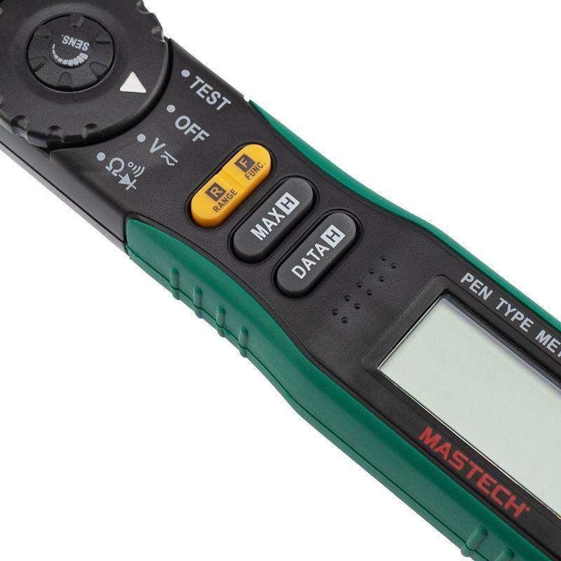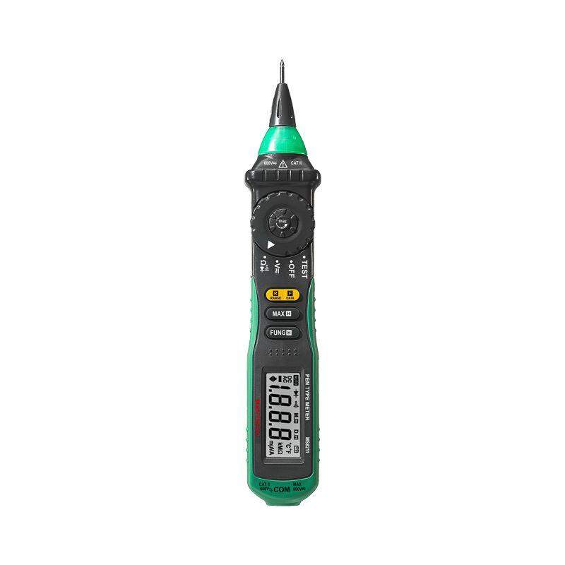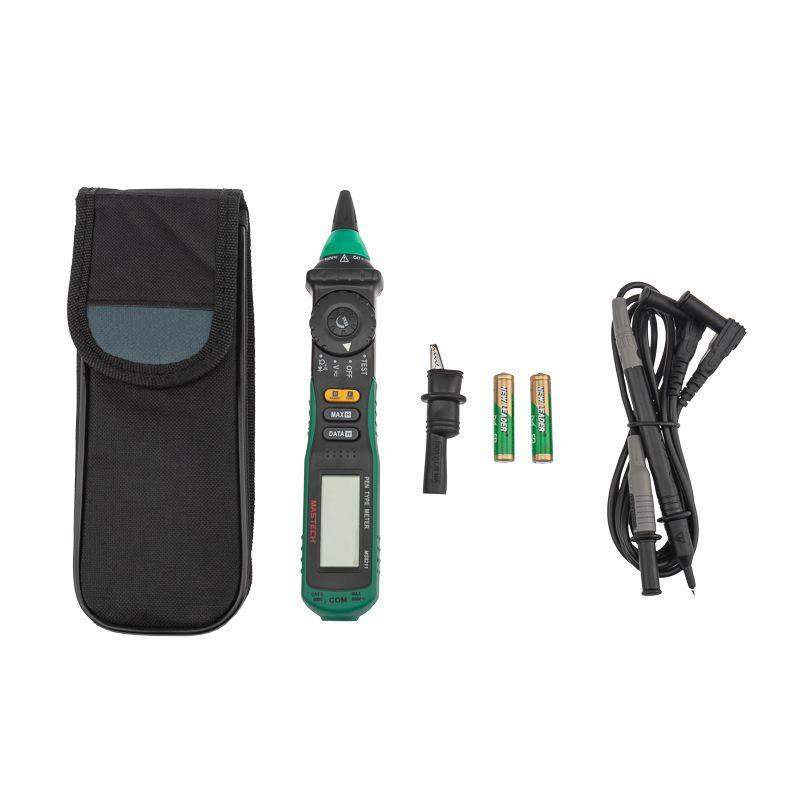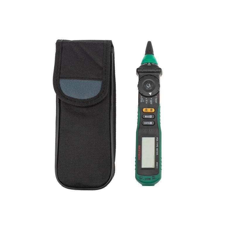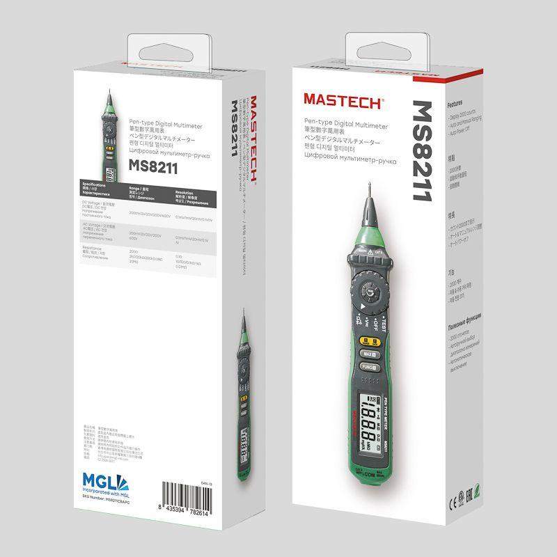 Цифровой мультиметр MASTECH MS8211 — прибор 2 в 1 - тестер напряжения и мультиметр, позволяющий измерять постоянное и переменное напряжение, сопротивление. Имеет режим «прозвонка», диод-тест. Особенность этого мультиметра заключается в наличии бесконтактного датчика напряжения (NCV) с регулировкой чувствительности. Мультиметр имеет звуковую и световую индикацию. Модель работает от 2 батареек 1.5 В ААА. Характеристики: Максимальное значение: 1999 Измерение постоянного напряжения: 200 мВ/2 В/20 В/200 В/600 В ±(0.7%+2) Измерение переменного напряжения: 200 мВ/2 В/20 В/200 В ±(0.8%+3); 600 В ±(1.0%+3) Измерение сопротивления: 200 Ом/2 кОм/20 кОм/200 кОм/2 МОм/20 МОм (±1%) Прозвонка цепей на проводимость звуковой сигнал при сопротивлении ниже 50 Ом Tест диодов Автоматическое отключение питания Удержание данных на дисплее DATA HOLD Защита от перегрузок Источник питания батарея 1,5 В (AAA) x 2 Габариты 208?38?29 мм Комплектация: Мультиметр-пробник MASTECH MS8211 (1 шт.) Тестовый щуп (1 шт.) Кейс (1 шт.) Батарея AAA (2 шт.) Инструкция по эксплуатации (1 шт.)
