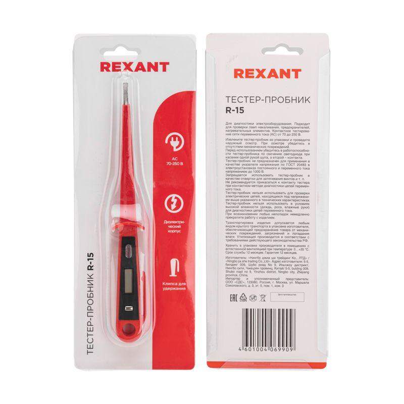 Тестер-пробник REXANT R-15 предназначен для быстрой и эффективной диагностики электрооборудования. Прибор имеет светодиодную индикацию. Корпус детектора изготовлен из ударопрочной пластмассы. Основные характеристики: - длина: 190 мм - тестирование домашних приборов - контактное тестирование сети переменного тока (AC) от 70 до 250 В - проверка ламп накаливания, предохранителей и нагревательных элементов на работоспособность