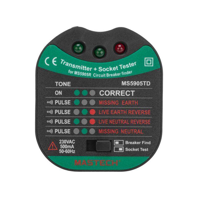Детектор автоматических выключателей/тестер розеток MASTECH MS5905 предназначен для обнаружения требуемого автоматического выключателя или предохранителя и для тестирования розеток. У вас больше не возникнет затруднений при поиске выключателя, соответствующего данной розетке или прибору. Детектор автоматов-выключателей позволяет быстро и точно найти искомый выключатель. Тестер розеток подходит для использования дома, в офисе, на производстве, при монтаже и обследовании электросетей. Состоит из передатчика (MS5905T) и приемника (MS5095R). Бесконтактное обнаружение напряжения Светодиодная индикация состояния проводки в розетках Звуковая и световая индикация Индикация разряженной батареи Рабочее напряжение: переменное 220-250 В/50-60 Гц Стандарт безопасности: IEC1010-1, CAT II 600 В (только MS5095R) Бесконтактный приемник сигнала MS5905R Поиск обрыва провода Бесконтактное определение напряжения (NCВ): ~90-600 В, частотой 50-60 Гц Подсветка рабочей зоны приемника Передатчик MS5905TD работает без достижения пороговых токов автоматов Светодиодная и звуковая индикация правильности разводки контактов розетки Светодиодная и звуковая индикация типа ошибки: - обрыв заземления; - неправильное подключение фазы/заземления; - неправильное подключение фазы/нуля; - обрыв нуля. Напряжение розетки: ~100-230 В Время непрерывной работы: не более 2 минут Индикация разряда батареи Диапазон рабочих температур: 0...+50 °С Диапазон рабочей влажности: <80% Питание: батарея 1 шт. х 9 В тип 6F22 Комплект поставки: передатчик, приемник, батарея, русская инструкция Размеры приемника: 177х46х31 мм Масса приемника: 135 г Размеры передатчика: 71х64х55 мм Масса передатчика: 63 г Масса комплекта с упаковкой: 285 г