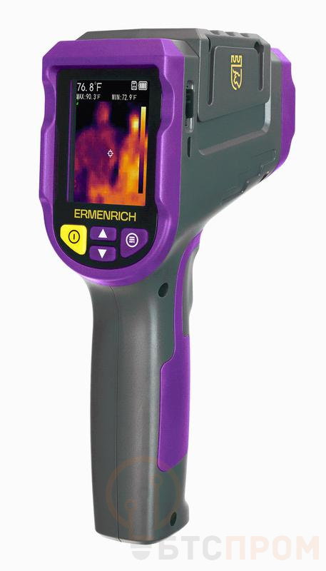 Ключевые характеристики: разрешение детектора 320x240 пикселей, тепловая чувствительность до 0.07°C, широкий диапазон измеряемых температур от -40°C до +330°C. Устройство имеет прочный корпус фиолетового цвета и встроенную защитную шторку для объектива.