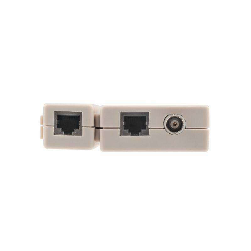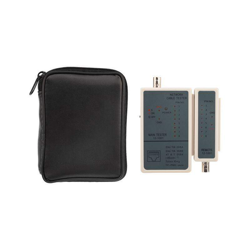Тестер кабеля RJ-45/RJ-12/ RJ-11/BNC 5248 REXANT предназначен для тестирования коаксиальных кабелей и кабелей на основе витых пар. Тестер состоит из двух функциональных блоков — передатчика и приемника, которые подключаются к концам кабельной линии через разъемы RJ-45/RJ-12/ RJ-11/BNC . Инструмент проверяет правильность обжима, обрыв и короткое замыкание, а также целостность экрана для экранированной витой пары. Светодиодная индикация есть на основном блоке прибора и на удаленном модуле, на нее выводится результат тестирования. Корпус изготовлен из ударопрочной пластмассы и имеет красивый практичный дизайн. Батарея: 9В Крона (6F 22) (не поставляется в комплекте)