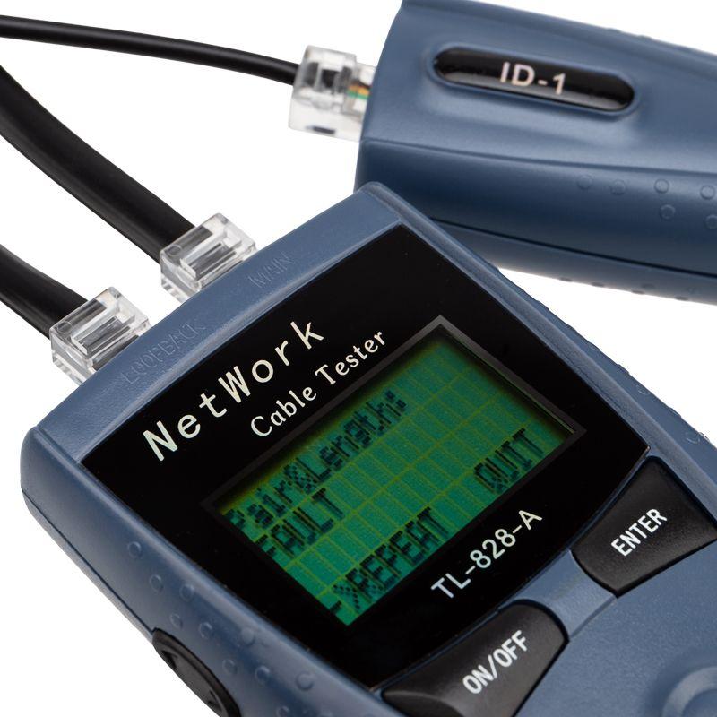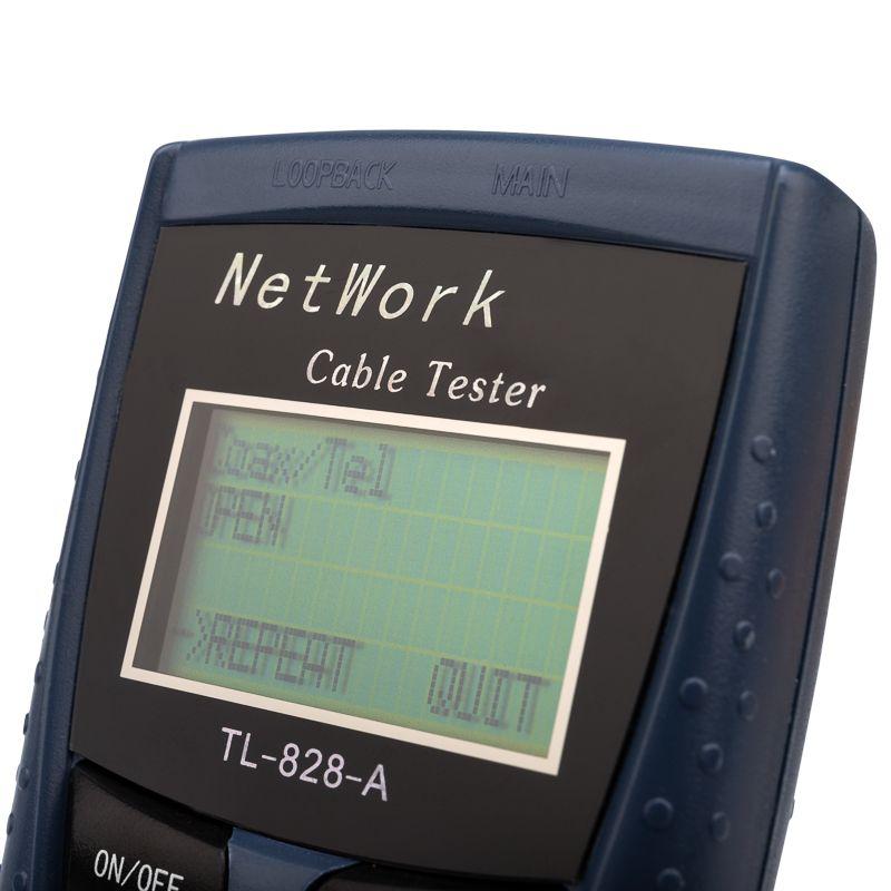 Тестер кабеля RJ-45 многофункциональный 828 REXANT предназначен для тестирования разомкнутых цепей, обнаружения короткого замыкания и устранения перекрестных соединений витых пар категории 5, 5Е и 6. Инструмент позволяет тестировать витую пару с точностью +1 % длиной от 5 до 450 метров. Информация выводится на жидкокристаллический дисплей размером 42х25 мм. Обладает функцией определения длины кабеля и длины кабеля до обрыва (метры, футы). По результатам тестирования калибровочные данные сохраняются. Рабочая температура тестера –20...+70 °С. В целях исключения разряда батареи питания, при бездействии, предусмотрено автовыключение через 10 минут. Батареи: 4 х 1.5В АА ( в комплекте)