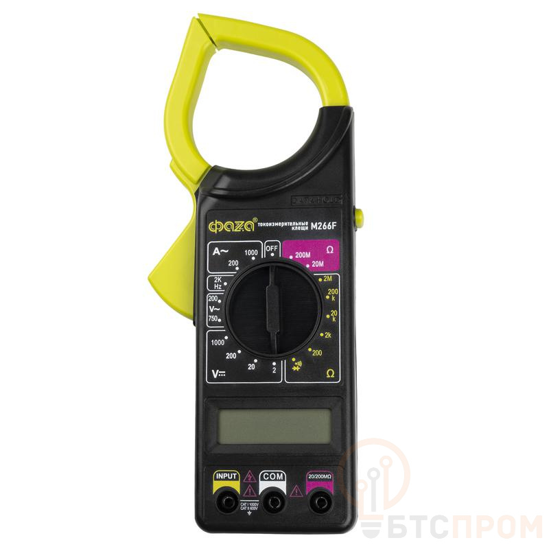 3.5цифр.токовые клещи. Измерение пост.и перем.напр-я, перем.тока, сопр.,сопр.изоляции, частоты.Прозвонка.Защита от перегрузки.Индикация полярности, разряда бат. Data hold. CAT II 600В, CAT I 1000В. Комплект - бат.9В, щупы, чехол., измерение частоты,