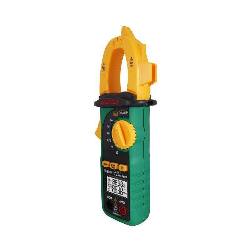 SMART токовые клещи MS2033AD MASTECH – это действительно ноу-хау в мире измерительной техники от официального дистрибьютора. SMART тестеры помогут при выполнении множества периодических схожих задач, например, проверке аппаратуры на производстве – не нужно каждый раз перед выполнением измерения менять функцию, прибор сам выберет необходимое измерение из доступных и предотвратит ошибку. Такой прибор будет идеальным на производстве, где необходим потоковый объем нескольких измерений и велика вероятность ошибки; для контрольных замеров, для первых шагов в работе с хорошо оснащенными мультиметрами, для обучения. Компактные токоизмерительные клещи MS2033A являются интеллектуальным прибором, с помощью которого можно измерять параметры с минимальным риском допустить ошибку. Кроме основной функции – бесконтактного измерения переменного тока, с помощью MS2033A можно измерить постоянное и переменное напряжение и сопротивление, функция прозвонки целостности цепи и тестирования диодов, большой двойной дисплей на 6000 отсчетов. MS2033A имеет функцию автоматического выбора пределов измерений. В отличие от устаревших моделей, где вам приходилось вручную выставлять пределы, сейчас же нужно всего лишь выбрать, какой из параметров вы собираетесь измерять. Кроме того, у прибора усиленный переключатель, благодаря которому исключается возможность случайного нажатия. Калибровка и тестирование приборов произведены под контролем компании СДС. Дисплей 6000 отсчетов Радиус открытия клещей O 26 мм Автовыбор диапазона измерений Автоматическое отключение Двойной дисплей Прозвонка <40 ? Автоудержание данных Режим максимальных/минимальных измерений Подсветка дисплея Индикация низкого уровня заряда батареи Электропитание: 3x1,5 В батарейки ААА Размер: 204x78x43 мм / 8,0x3,1x1,8 дюйма Вес: 195 г / 0,43 фунта Характеристики Диапазон Точность разрешения Напряжение постоянного тока: 6 В/60 В/600 В 0,01 В/0,1 В/1 В ±(0,5% +3) Напряжение переменного тока: 6 В/60 В/600 В 0,01 В/0,1 В/1 В ±(0,8% +5) Переменный ток 2 А/20 А/200 А 0,01 А/0,01 А/0,1 А ±(2,5% +8) 600 А 1 А ±(3,0% + 0) Сопротивление: 2 кОм/20 кОм/200 k?/2 мОм 0.001 k?/0.01 k?/0.1 k?/0.001 M? ±(0,8% +3) 10 МОм 0,01 МОм ±(1,0% +5) Частота (зажим): 60 Гц/600/3 кГц 0,1 Гц/1 Гц/10 Гц ± (1,0% +5) Частота (щупы): 60 Гц/600/3 кГц 0,1 Гц/1 Гц/10 Гц ± (1,0% +5) Рабочий цикл: 10~90% 1% ±2,0%