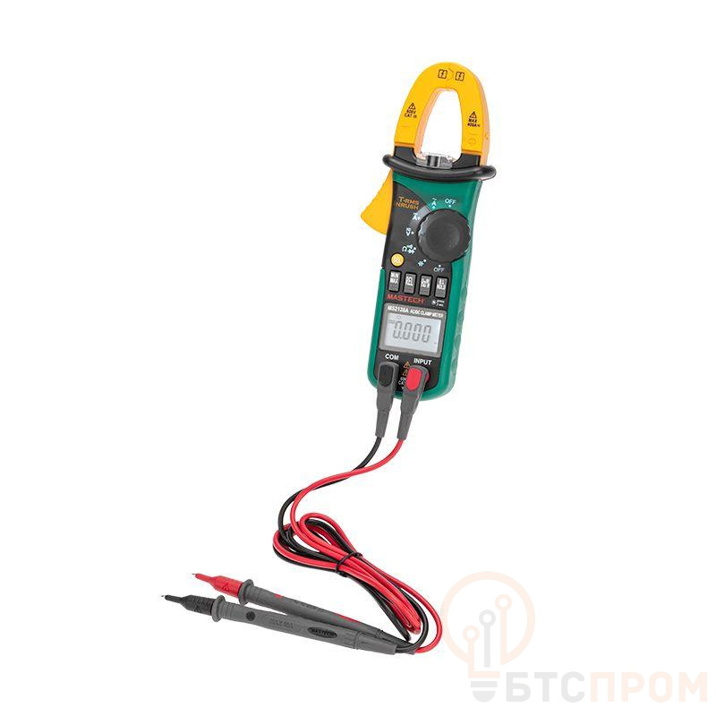Токоизмерительные клещи MS2128 являются многофункциональным TRUE RMS прибором, с помощью которого можно измерить множество параметров. Кроме основной функции измерения переменного тока, с помощью MS2128 можно измерить постоянное и переменное напряжение, сопротивление, частоту сигнала, емкость и скважность. У данного прибора есть функция прозвонки целостности цепи и проверки диодов. Одной из главных фишек прибора является измерение пусковых токов. Токовые клещи MS2128 имеют функцию удержания результата измерений DATA HOLD для тех случаев, когда измерения проводятся в труднодоступных местах и не всегда есть возможность взглянуть на экран. Дисплей прибора оснащен подсветкой, которая позволяет проводить измерения даже в слабоосвещенных местах. Прибор изготовлен из высококачественных материалов и имеют эргономичный дизайн. Инженеры старались максимально упростить прибор и поэтому с ним легко работать даже одной рукой. У прибора усиленный переключатель, благодаря которому исключается возможность случайного нажатия. Калибровка и тестирование приборов произведены под контролем компании СДС. Технические характеристики: Дисплей 6600 отсчетов Радиус открытия клещей O 26 мм Авто и ручной выбор диапазона измерений Автоматическое отключение Пусковой 100 мс Текущий Интеграл TRUE RMS Истинное среднеквадратичное значение Тест диодов: 1,5 В Прозвонка: <50 ± 20 ? Режим максимальных\минимальных измерений Удержание данных Подсветка дисплея Подсветка рабочей зоны Индикация низкого уровня заряда батареи Постоянное напряжение: 660 мВ/6,6 В/66 В 0,1 мВ/0,001 В/0,01 В ±(0,8% +3) 600 В 0,1 В ±(1,0% +5) Переменное напряжение: 660 мВ 0,1 мВ ±(1,5% +10) 6,6 В/66 В 0,001 В/0,01 В ±(1,2% +5) 600 В 0,1 В ±(1,5% +10) Постоянный ток: 66 А/600 А 0,01 А/0,1 А ±(3,0% +10) Переменный ток: 66 А/600 А 0,01 А/0,1 А ±(3,0% +10) Пусковой ток: 66 А/600 А 0,01 А/0,1А ±(10,0% +60) Сопротивление: 660 Ом/6,6 кОм/66 кОм 0,1 Ом/0,001 кОм/0,01 кОм ±(1,2% +2) 660 кОм/6,6 МОм 0,1 кОм/0,001 МОм ±(1,2% +2) 66 МОм ±0,1 МОм ±(2,0% +5) Емкость: 6,6 мкФ 0,001 мкФ ± (4,0% + 50) 66 мФ / 660 мФ / 6.6 мФ / 66 мФ / 0.01 мФ/0.1 мкФ/0.001 мФ/0.01 мФ ± (4,0% + 3) Частота (A): 660 Гц/1 кГц 0,1 Гц/0,001 кГц ±(1,5% +5) >1 кГц 0,01 кГц Частота (В): 660 Гц/6,6 кГц/10 кГц 0,1 Гц/0,001 кГц/0,01 кГц ±(1,5% +5) >10 кГц 0,01 кГц Рабочий цикл: 10~95% 0,1% ± 3,0% Комплект поставки: Токовые клещи, чехол, инструкция, щупы Питание: 3 ? 15 В батарейки ААА Размер: 208?78?53 мм Вес: 245 г