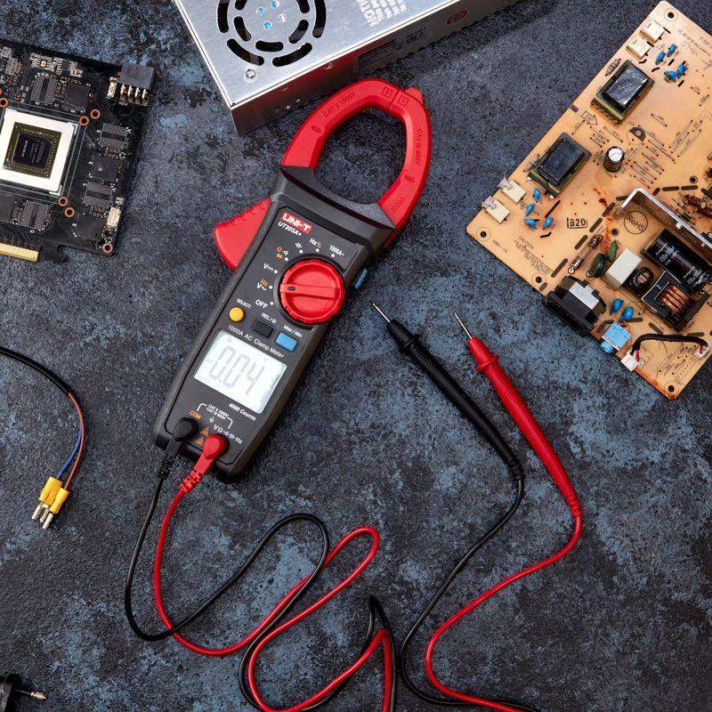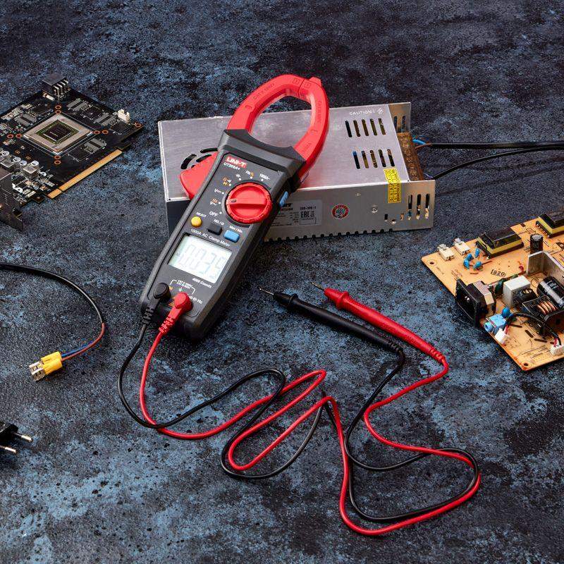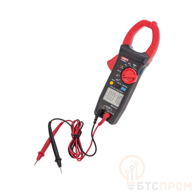 Токоизмерительные цифровые клещи UNI-T UT205A+ являются обновлением модели 205. С их помощью измеряется переменный ток, постоянное и переменное напряжение до 1000В, сопротивление, емкость и частоту. Оснащены многими функциями, такими как звуковая прозвонка целостности цепи, проверка диодов, а также удержание результатов DATA HOLD для тех случаев, когда измерения проводятся в труднодоступных местах и нет возможности взглянуть на экран. Отличительные особенности: определение скважности, измерение максимальных/минимальных, относительных значений, подсветка дисплея, индикация разряженной батареи, автоотключение питания (15 мин), автоматический выбор пределов измерений. Клещи имеют удобное управление с отображением данных на экран. Характеристики: Метод измерения: истинный среднеквадратичный (True RMS) Постоянное напряжение: 1000 В ± (0.7%+3) Переменное напряжение: 1000 В ± (1.0%+2) Переменный ток: 1000 А ± (1.5%+5) Сопротивление: 40 МОм ± (0.8%+2) Емкость: 40 мФ ± (4%+5) Коэффициент заполнения (скважность): 0,1% … 99,9% Частота: 10 Гц - 10 мГц ±(0.1%+4) Дисплей: 4000 разрядов Охват клещей: 45 мм Импеданс: около 10 МОм Размер: 242?76.5x52 мм Вес: 235 гр Питание: батареи 2 шт. х 1,5 В тип AAА Комплект поставки: прибор, батареи, измерительные щупы, чехол, инструкция по эксплуатации