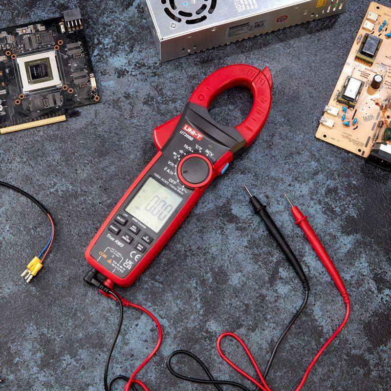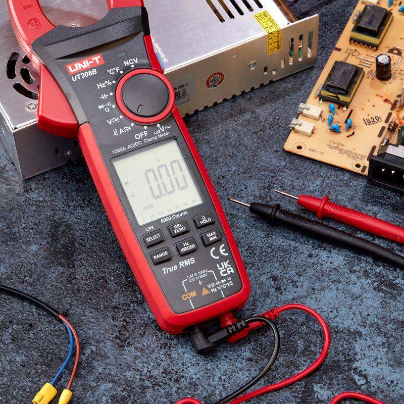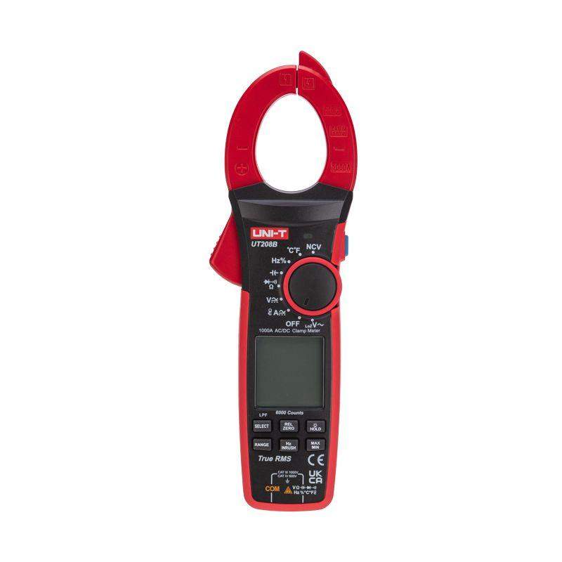 Токоизмерительные TRUE RMS цифровые клещи UNI-T UT208B является обновлением модели 208. Измеряют переменный ток до 1000А и пусковой ток до 600А, постоянное и переменное напряжение до 1000В, сопротивление, емкость частоту, скважность и температуру контактным методом. Оснащен многими функциями, такими как звуковая прозвонка целостности цепи, проверка диодов, а также удержание результатов DATA HOLD для тех случаев, когда измерения проводятся в труднодоступных местах и нет возможности взглянуть на экран. Отличительные особенности: метод измерения истинный среднеквадратичный (True RMS); бесконтактный детектор напряжения NCV; фильтр низких частот; измерение частот напряжения и тока; измерение максимальных/минимальных, относительных значений; автоотключение питания (15 мин); автоматический выбор пределов измерений; тестирование диодов; графическая шкала. Характеристики: Метод измерения: истинный среднеквадратичный (True RMS) Постоянное напряжение: 1000 В ± (0.5%+5) Переменное напряжение: 1000 В ±(1.2%+3) Фильтр нижних частот (LPF ACV): 1000В ±(2%+5) Частотная характеристика переменного напряжения: 40Гц~400Гц Вход переменного напряжения с низким импедансом (LoZ ACV): 1000 В ±(2%+5) Частота низкого напряжения (Гц): 10 Гц - 1 мГц ±(0.1%+3) Постоянный ток: 1000 А ±(2%+5) Переменный ток: 1000 А ±(2%+5) При подключении (опционально) гибкого пробника возможно измерение токов до 3000А Частотная характеристика переменного тока: 40Гц~400Гц Пусковой ток: 1000А ±(10%+10) Сопротивление: 60 МОм ± (1%+2) Емкость: 60 мФ ± (4%+5) Коэффициент заполнения (скважность): 10%~90% ± (2.6%+7) Частота: 10 Гц - 10 МГц ± (0.1%+4) Температура: –40?~1000? ± (1%+2) / –40?~1832? ± (1%+4) Графическая шкала: 31 деление Дисплей: 6000 разрядов Охват клещей: 42 мм Импеданс: около 10 МОм Размер: 272 x 81 x 43.5 мм Вес: 420 гр Питание: батареи 3 шт. х 1,5 В тип AAА Комплект поставки: прибор, батареи, измерительные щупы, термопара, чехол, инструкция по эксплуатации