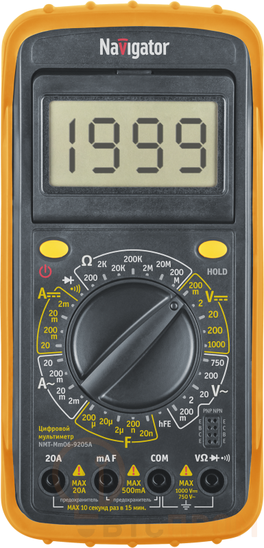 Цифровой мультиметр Navigator 93590 (модель 9205A) — это надежный и многофункциональный измерительный прибор, предназначенный для профессионального и бытового применения. Он сочетает в себе высокую точность измерений и простоту использования.