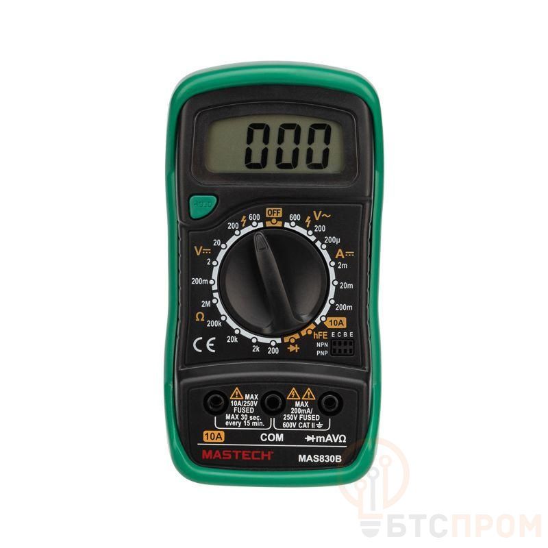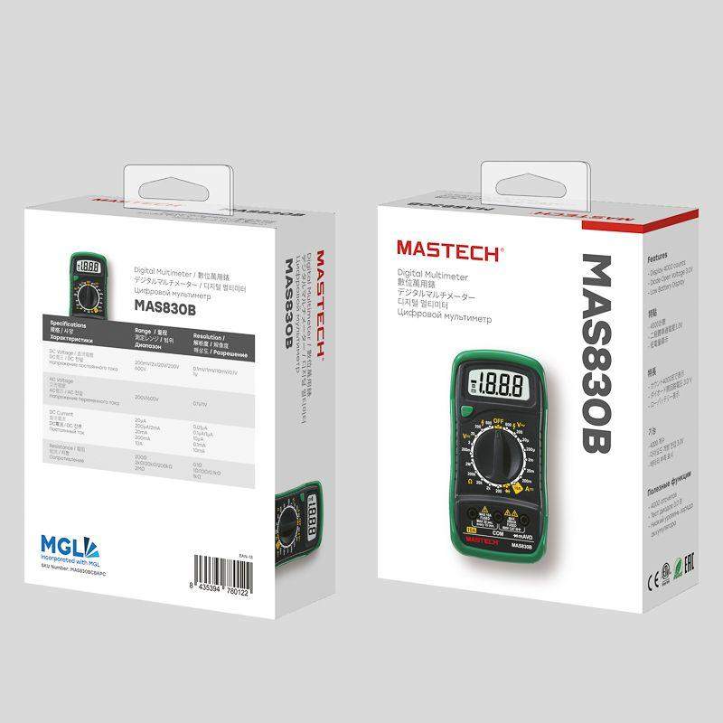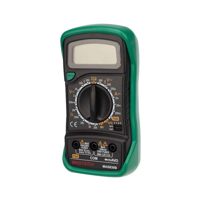 Мультиметр — электроизмерительный прибор, который включает в себя несколько функций и набор измеряемых параметров. Все приборы серии MAS830 измеряют постоянное и переменное напряжение, постоянный ток и сопротивление в цепи. С помощью данного прибора можно проводить тестирование диодов. Прибор MAS830B является портативным мультиметром, компактные размеры позволяют всегда носить его с собой. Но, несмотря на малые размеры, данный мультиметр обладает широким функционалом и это выгодно отличает его от других. Прибор имеет функцию удержания результата измерений DATA HOLD для тех случаев, когда измерения проводятся в труднодоступных местах и не всегда есть возможность взглянуть на экран. Инженеры старались сделать прибор максимально удобным для использования. Выбор измеряемых величин и пределов измерений производится с помощью усиленного поворотного регулятора, благодаря которому исключается возможность случайного нажатия. Прибор изготовлен из высококачественных материалов, калибровка и тестирование приборов произведены под контролем компании СДС. Характеристики: Постоянное напряжение: 200 mВ/2 В/20 м/200 В (±0,5%+3), 600 В (±0,8%+5) Переменное напряжение: 200 В/600 В (±1,2%+10) Постоянный ток: 20 мкА/200 мкА/2 мА/20 мА/200 мА(±1,0%+3), 10 A (±3,0%+10) Сопротивление: 200 Ом/2 КОм/20 КОм/200 КОм (±0,8%+2), 2 МОм (±1,0%+5) 4-разрядный дисплей Ручной выбор предела измерений Тестирование диодов Режим удержания измерений DATA HOLD Размер: 145х76х40 мм Тип батареи: 9 В «Крона»