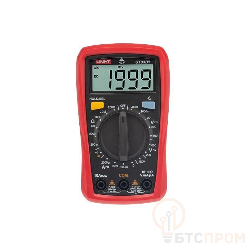 Мультиметр — электроизмерительный прибор, который включает в себя несколько функций и набор измеряемых параметров. Все приборы серии UT-33+ измеряют напряжение, сопротивление и ток в цепи. Серия 33+ идет на замену серии 33. Прибор UT33D+ является портативным мультиметром, компактные размеры позволяют всегда носить его с собой. У обновленной модели теперь есть встроенный бесконтактный детектор напряжения NCV. Несмотря на малые размеры, данный мультиметр обладает широким функционалом и это выгодно отличает его от других. С его помощью вы сможете измерить постоянное и переменное напряжение, постоянный ток и сопротивление. А также с помощью данного прибора можно проводить тестирование диодов и осуществлять прозвонку целостности цепи. Инженеры старались сделать прибор максимально удобным для использования. Выбор измеряемых величин и пределов измерений производится с помощью усиленного поворотного регулятора, благодаря которому исключается возможность случайного нажатия. Мультиметр UT33D+ оснащен функцией DATA HOLD, и зафиксировав результат измерений, вы в любое время сможете считать полученные значения. Дисплей прибора оснащен подсветкой, которая позволяет проводить измерения даже в слабоосвещенных местах. Прибор изготовлен из высококачественных материалов и комплектуется защитным чехлом, который позволит избежать повреждений прибора от падений и царапин. Мультиметр снабжен подставкой, которая позволяет разместить прибор на любой плоской поверхности. Характеристики: Постоянное напряжение: до 600 В +/- (0,5%+2) Переменное напряжение: до 600 В +/- (0,7%+3) Постоянный ток: до 10 А +/- (1,0%+2) Сопротивление: до 200 МОм +/- (0,8%+2) 4-разрядный дисплей Ручной выбор предела измерений Тестирование диодов Бесконтактный детектор напряжения NCV Режим удержания измерений DATA HOLD Прозвонка целостности цепи Индикатор разряда батареи: да Импеданс: около 10 МОм Размер аппарата: 78х48х134 мм Тип батареи: 2 шт. ААА Комплектация: мультиметр, измерительные щупы, батареи, инструкция, упаковка.