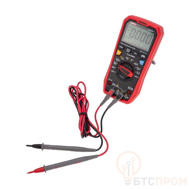 Профессиональный TRUE RMS мультиметр последнего поколения UNI-T UT61D+ с ударопрочным корпусом применяется с целью измерения постоянного/переменного напряжения, силы тока, сопротивления, емкости и частоты с большим разрешением и точностью. Призван заменить сразу снятые с производства модели 61C и 61D. Присутствует LoZ (вход с низким импедансом), аналоговая шкала. Дисплей на 6 000 разрядов с подсветкой облегчает считывание результатов при слабом внешнем освещении. Функция удержания данных обеспечивает удобство при работе в местах с ограниченным доступом. Выбор диапазона измерения производится автоматически или вручную. В устройстве предусмотрена прозвонка межсоединений со звуковым сигналом, диодный тест и защитный холстер. Во всех приборах серии имеется USB интерфейс и кабель для работы с ПК. Прибор имеет режимы относительных, максимальных/минимальных измерений. Оснащен функцией сохранения показаний DATA HOLD, индикацией режима измерений и разряда батареи. Технические характеристики UNI-T UT61D+: Постоянное напряжение: 1000 В ± (0.05%+3) Переменное напряжение: 1000 В ± (1%+3) Постоянный ток: 220 мА/20 А ± (1%+2) Переменный ток: 220 мА/20 А ± (1.2%+5) Сопротивление: 60МОм ± (1%+2) Емкость: 1 пФ-60 000 мкФ ± (3%+5) Частота: 0,001 Гц-10 МГц ± (0.1%+4) Температура: -40?~1000? ± (1%+3), -40?~1832? ± (1%+6) Коэффициент заполнения (скважность): 0.1~99.9 % ± (2%+5) Диод-тест: да Питание: 4х1.5В AAA Размеры: 190х90х50мм Вес: 0.350 кг Комплектация: мультиметр, позолоченные щупы, термопара, кабель USB с переходником к мультиметру, батарея, инструкция по эксплуатации, программное обеспечение и инструкция по его установке.