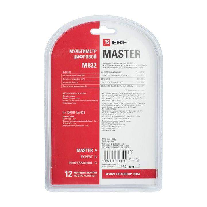 –Мультиметр цифровой M832 Master EKF In-180701-bm832