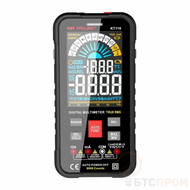 • Цифровой мультиметр с True RMS, автоматическим выбором режимов и пределов измерений и цветным ЖК-дисплеем 3.6"