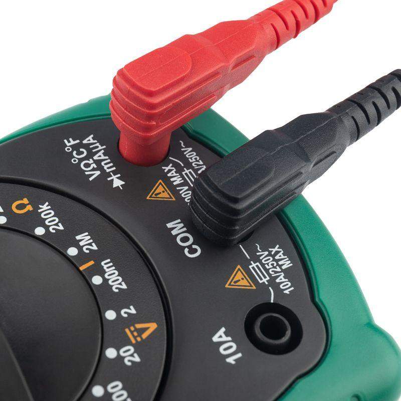 Мультиметр — электроизмерительный прибор, который включает в себя несколько функций и набор измеряемых параметров. Все приборы серии MS8233 измеряют постоянное и переменное напряжение, а также постоянный ток, сопротивление в цепи и даже температуру. С помощью данного прибора можно проводить тестирование диодов и осуществлять прозвонку целостности цепи. Также мультиметр MS8233C оборудован специальным датчиком, с помощью которого вы бесконтактно сможете определить есть ли напряжение на участке, например в розетке, если есть необходимость демонтировать ее, то с помощью данного мультиметра вы сможете сразу узнать, если ли в ней напряжение. Таким образом, один прибор сможем заменить сразу несколько устройств одновременно. Прибор MS8233C является портативным мультиметром, компактные размеры позволяют всегда носить его с собой. Но, несмотря на малые размеры, данный мультиметр обладает широким функционалом и это выгодно отличает его от других. Прибор имеет функцию удержания результата измерений DATA HOLD для тех случаев, когда измерения проводятся в труднодоступных местах и не всегда есть возможность взглянуть на экран. Дисплей прибора оснащен подсветкой, которая позволяет проводить измерения даже в слабоосвещенных местах. Инженеры старались сделать прибор максимально удобным для использования. Выбор измеряемых величин и пределов измерений производится с помощью усиленного поворотного регулятора, благодаря которому исключается возможность случайного нажатия. Прибор изготовлен из высококачественных материалов, калибровка и тестирование приборов произведены под контролем компании СДС. Характеристики: Постоянное напряжение: 200 mВ/2 В/20 мВ/200 В (±0,5%+3), 600 В (±0,8%+5) Переменное напряжение: 200 В/600 В (±1,2%+10) Постоянный ток: 200 мкА/20 мА/200 мА (±1,0%+3), 10 A (±3,0%+5) Сопротивление: 200 Ом/2 КОм/20 КОм/200 Ком/2 МОм (±0,8%+4) Температура: –20~+1000 °C (±2,0%+2) 4-разрядный дисплей Ручной выбор предела измерений Тестирование диодов Прозвонка целостности цепи Дисплей с подсветкой Бесконтактный детектор напряжения NCV Режим удержания измерений DATA HOLD Импеданс: <50 Ом Размер: 145х73х45 мм Тип батареи: 9 В «Крона»
