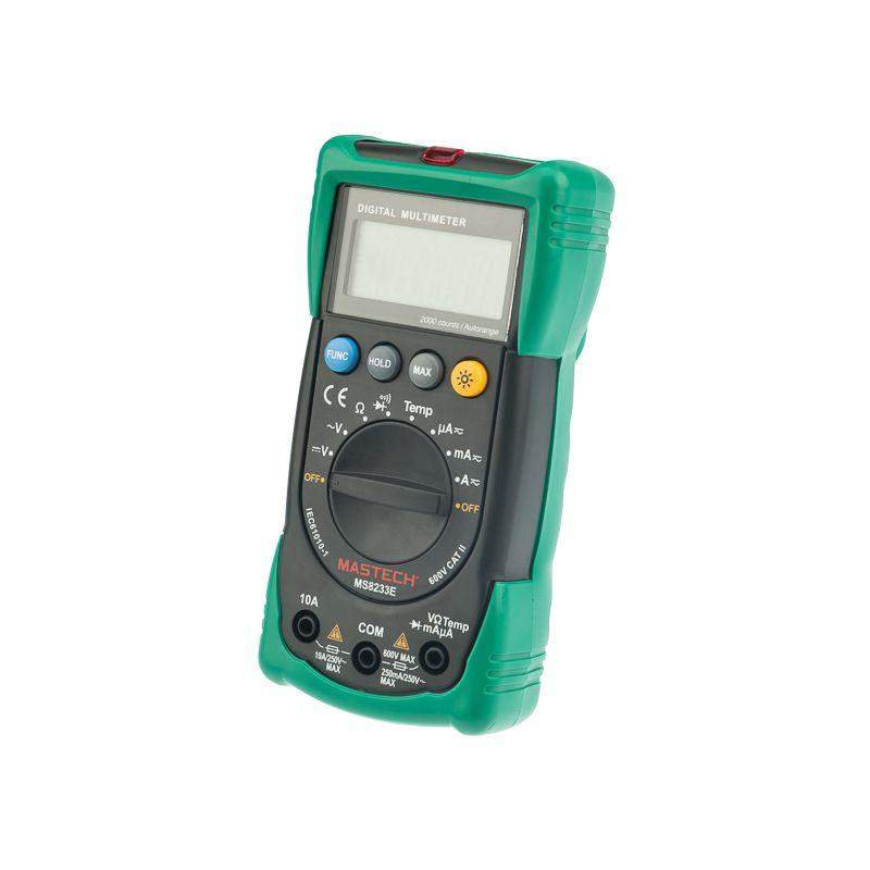 Мультиметр — электроизмерительный прибор, который включает в себя несколько функций и набор измеряемых параметров. Все приборы серии MS8233 измеряют постоянное и переменное напряжение, а также постоянный и переменный ток, сопротивление в цепи и даже температуру. С помощью данного прибора можно проводить тестирование диодов и осуществлять прозвонку целостности цепи. Мультиметр MS8233E оборудован специальным датчиком, с помощью которого вы бесконтактно сможете определить, есть ли напряжение на участке, например в розетке, если есть необходимость демонтировать ее, то с помощью данного мультиметра вы сможете сразу узнать, если ли в ней напряжение. Таким образом, один прибор сможет заменить сразу несколько устройств одновременно. Прибор MS8233E является портативным мультиметром, компактные размеры позволяют всегда носить его с собой. Но, несмотря на малые размеры, данный мультиметр обладает широким функционалом и это выгодно отличает его от других. Прибор имеет функцию удержания результата измерений DATA HOLD для тех случаев, когда измерения проводятся в труднодоступных местах и не всегда есть возможность взглянуть на экран. Дисплей прибора оснащен подсветкой, которая позволяет проводить измерения даже в слабоосвещенных местах. У прибора есть режим отображения максимального значения, что позволит сократить время для изучения данных. Инженеры старались сделать прибор максимально удобным для использования. MS8233E имеет функцию автоматического выбора пределов измерений. В отличие от устаревших моделей, где вам приходилось вручную выставлять пределы, сейчас же нужно всего лишь выбрать, какой из параметров вы собираетесь измерять. Кроме того, у прибора усиленный переключатель, благодаря которому исключается возможность случайного нажатия. Калибровка и тестирование приборов произведены под контролем компании СДС. Характеристики: Постоянное напряжение: 200 mВ/2 В/20 м/200 В (±0,5%+3), 600 В (±0,8%+2) Переменное напряжение: 2 В/20 В/200 В (±0.9%+3), 600 В (±1,2%+3) Постоянный ток: 200 мкА/2 мА/20 мА/200 мА (±1,0%+3), 10 A (±1.5%+4) Переменный ток: 200 мкА/2 мА/20 мА/200 мА (±1,5%+3), 10 A (±1.5%+4) Сопротивление: 200 Ом/2 КОм/20 КОм/200 КОм (±0,8%+2), 2 МОм/20 МОм (±1,0%+2) Температура: –20~+1000 °C (±3,0%+3) 4-разрядный дисплей Автоматический и ручнойj выбор предела измерений Тестирование диодов Прозвонка целостности цепи <70Ом Дисплей с подсветкой Бесконтактный детектор напряжения NCV Режим удержания измерений DATA HOLD Регистрация max значений (Max Hold) Размер: 145х73х45 мм Тип батареи: 9 В «Крона»