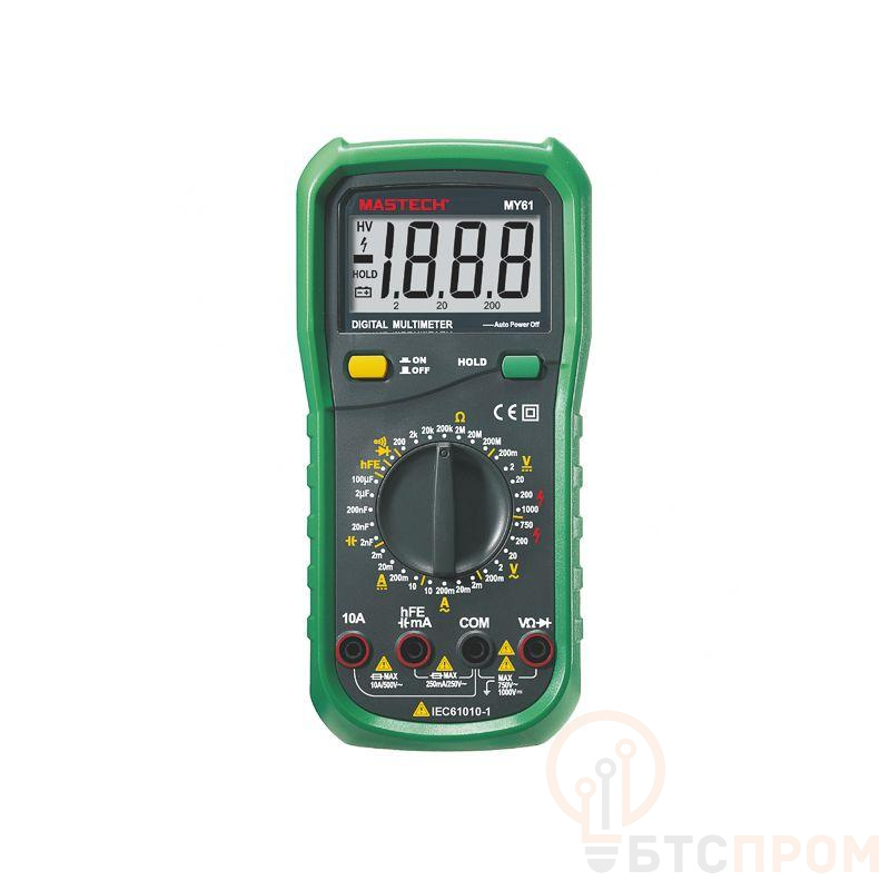Мультиметр – электроизмерительный прибор, который включает в себя несколько функций и набор измеряемых параметров. Прибор MY61N относится к обновленной серии N, что отразилось на внешнем и внутреннем дизайне, ряде параметров и улучшенной схемотехнике. Прибор измеряет постоянное и переменное напряжение, а также постоянный и переменный ток, сопротивление, емкость в цепи. С помощью данного прибора можно проводить тестирование диодов, прозвонку целостности цепи и измерение коэффициента усиления транзисторов. Таким образом, один прибор сможем заменить сразу несколько устройств одновременно. Прибор MY61N является полноразмерным универсальным мультиметром обновленного форм-фактора с широким функционалом, с большим ручным выбором диапазонов измерений, который можно использовать практически в любой сфере деятельности. Прибор имеет функцию удержания результата измерений DATA HOLD для тех случаев, когда измерения проводятся в труднодоступных местах и не всегда есть возможность взглянуть на экран. Инженеры старались сделать прибор максимально удобным для использования. Выбор измеряемых величин и пределов измерений производится с помощью усиленного поворотного регулятора, благодаря которому исключается возможность случайного нажатия. Прибор изготовлен из высококачественных материалов, калибровка и тестирование приборов произведены под контролем компании REXANT INTERNATIONAL. Характеристики: Постоянное напряжение: 200 mВ/2 В/20 мВ/200 В (±0,5%+3), 1000 В (±0,8%+3) Переменное напряжение: 200 мВ/2 В/20 В/200 В (±0,8%+3), 750 В (1,2%+3) Постоянный ток: 2 мА/20 мА/200 мА(±1,5%+1), 10 A (±2,0%+5) Переменный ток: 2 мА/20 мА/200 мА(±1,8%+5), 10 A (±3,0%+5) Сопротивление: 200 Ом/2 КОм/20 КОм/200 Ком/2 МОм(±0,8%+3), 20 МОм (±1,0%+5), 200 МОм (±6,0%+10) Емкость: 2 нФ/20 нФ/200 нФ/2 мкФ (±4%+3),100 мкФ (±6%+10) Разрядность шкалы мультиметра: 1999 отсчетов Ручной выбор предела измерений Тестирование диодов Прозвонка целостности цепи <50 Ом Коэффициент усиления транзисторов (hFE): 0~1000 Режим удержания измерений DATA HOLD Размер: 145х73х45 мм Тип батареи: 9 В «Крона» Комплект поставки: Мультиметр, батарея, щупы, инструкция
