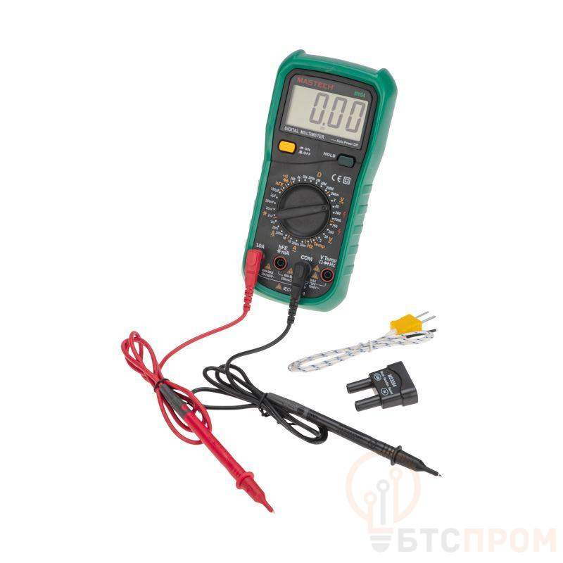 Мультиметр — электроизмерительный прибор, который включает в себя несколько функций и набор измеряемых параметров. Прибор MY64N относится к обновленной серии N, что отразилось на внешнем и внутреннем дизайне, ряде параметров и улучшенной схемотехнике. Все приборы серии MY измеряют постоянное и переменное напряжение, постоянный и переменный ток, сопротивление в цепи, емкость, температуру и даже частоту, проверить транзисторы. А также, с помощью прибора MY64N можно проводить тестирование диодов, прозвонку целостности цепи и измерение коэффициента усиления транзисторов. Прибор имеет функцию удержания результата измерений DATA HOLD для тех случаев, когда измерения проводятся в труднодоступных местах и не всегда есть возможность взглянуть на экран. Прибор MY64N является полноразмерным универсальным мультиметром классического форм-фактора с широким функционалом, с большим ручным выбором диапазонов измерений , который можно использовать практически в любой сфере деятельности. Инженеры старались сделать прибор максимально удобным для использования. Выбор измеряемых величин и пределов измерений производится с помощью усиленного поворотного регулятора, благодаря которому исключается возможность случайного нажатия. Прибор изготовлен из высококачественных материалов. Калибровка и тестирование приборов произведено под контролем компании СДС. Характеристики: Постоянное напряжение: 200 мВ/2 В/20 В/200 В (±0,5%+3), 1000 В (±0,8%+3) Переменное напряжение: 2 В/20 В/200 В (±0,8%+5), 750 В (±1,2%+3) Постоянный ток: 2 мА/20 мА/200 мА (±1,5%+1), 10 A (±2,0%+5) Переменный ток: 2 мА/20 мА/200 мА (±1,8%+5), 10 A (±3,0%+5) Сопротивление: 200 Ом/2 КОм/20 КОм/200 КОм/2 Мом (±0,8% +3), 20 МОм (±1,0% +5), 200 МОм (±6,0%+10) Емкость: 2 нФ/20 нФ/200 нФ/2 мкФ (±4,0%+3), 100 мкФ (±6,0%+10) Частота: 20 кГц (±1,5%+5) Температура: –20~+1000 °С (±2,0%+2) Разрядность шкалы мультиметра: 1999 отсчетов Тестирование диодов Прозвонка целостности цепи <50 Ом Коэффициент усиления транзисторов h21: до 1000 Генератор прямоугольного сигнала (меандр) Ручной выбор предела измерений Размер: 195х95х55 мм Тип батареи: 9 В «Крона» Вес: 366 г