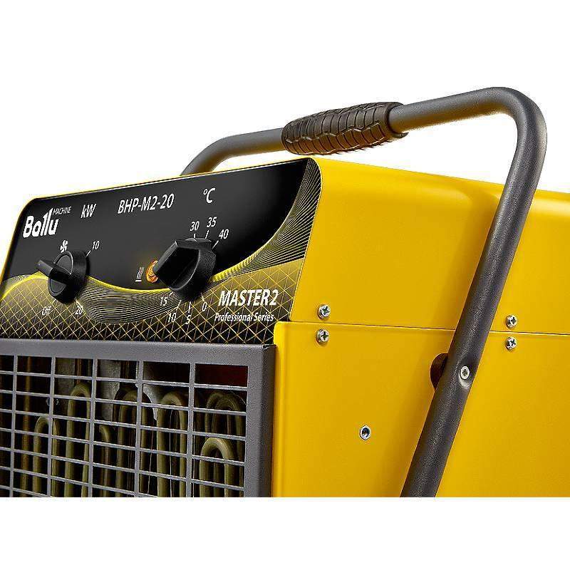 Электрические тепловые пушки BALLU серии Master 2 – новая флагманская серия профессиональных тепловентиляторов для общего обогрева помещений при ремонте, отделочных работах, на стройках и других объектах, где есть потребность в автономном источнике отопления. Тепловентиляторы данной серии могут работать в режиме «без нагрева», в качестве переносных вентиляторов. Новая панель управления со световой индикацией показывает активный режим нагрева. Тепловентиляторы серии Master 2 имеют повышенную степень пылевлагозащиты IP24, что позволяет использовать приборы во влажных помещениях и на открытых площадках без навеса. В приборах серии применяются электрические компоненты с большим ресурсом работы, высокоточный капиллярный терморегулятор и защитный термостат с функцией блокировки автоматического включения в случае перегрева. Тепловентиляторы Master 2 предназначены для непрерывной работы 24/7 в самых суровых условиях эксплуатации, даже при отрицательных температурах до -30°С. Новая опора-трансформер с увеличенным «дорожным просветом» (тепловентилятор можно ставить на строительный мусор и в грязь) или возможностью наклона. Самая мощная 40 кВт модель серии Master 2 дополнительно к остальным преимуществам серии комплектуется трёхскоростным вентилятором, позволяющим регулировать производительность по воздуху. Поставляется на колёсном шасси для удобного перемещения.