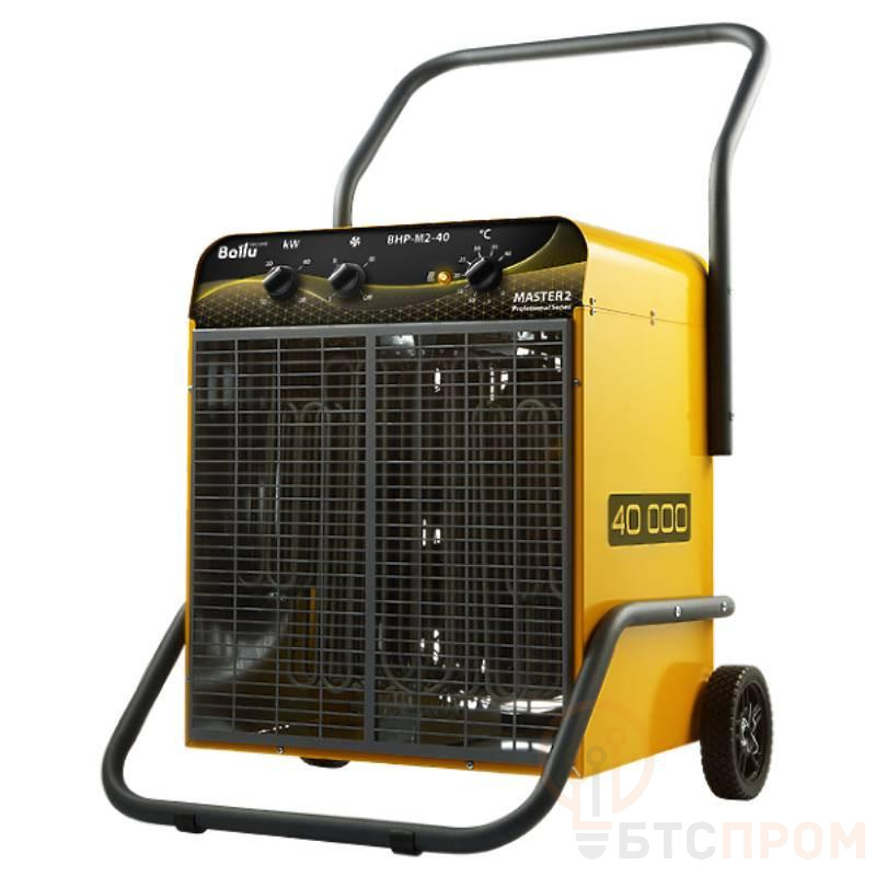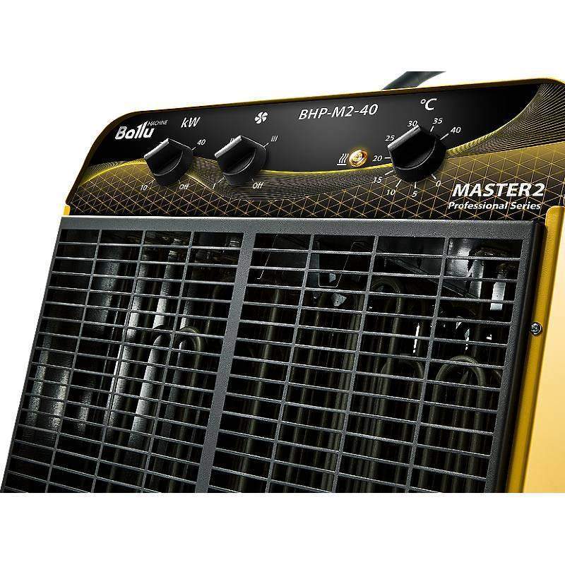 Электрические тепловые пушки BALLU серии Master 2 – новая флагманская серия профессиональных тепловентиляторов для общего обогрева помещений при ремонте, отделочных работах, на стройках и других объектах, где есть потребность в автономном источнике отопления. Тепловентиляторы данной серии могут работать в режиме «без нагрева», в качестве переносных вентиляторов. Новая панель управления со световой индикацией показывает активный режим нагрева. Тепловентиляторы серии Master 2 имеют повышенную степень пылевлагозащиты IP24, что позволяет использовать приборы во влажных помещениях и на открытых площадках без навеса. В приборах серии применяются электрические компоненты с большим ресурсом работы, высокоточный капиллярный терморегулятор и защитный термостат с функцией блокировки автоматического включения в случае перегрева. Тепловентиляторы Master 2 предназначены для непрерывной работы 24/7 в самых суровых условиях эксплуатации, даже при отрицательных температурах до -30°С. Новая опора-трансформер с увеличенным «дорожным просветом» (тепловентилятор можно ставить на строительный мусор и в грязь) или возможностью наклона. Самая мощная 40 кВт модель серии Master 2 дополнительно к остальным преимуществам серии комплектуется трёхскоростным вентилятором, позволяющим регулировать производительность по воздуху. Поставляется на колёсном шасси для удобного перемещения.