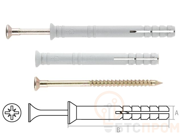 Дюбель-гвоздь 8х60 мм полипропилен потай (6 шт в зип-локе) STARFIX SMZ3-42914-6 фото в каталоге от BTSprom.by