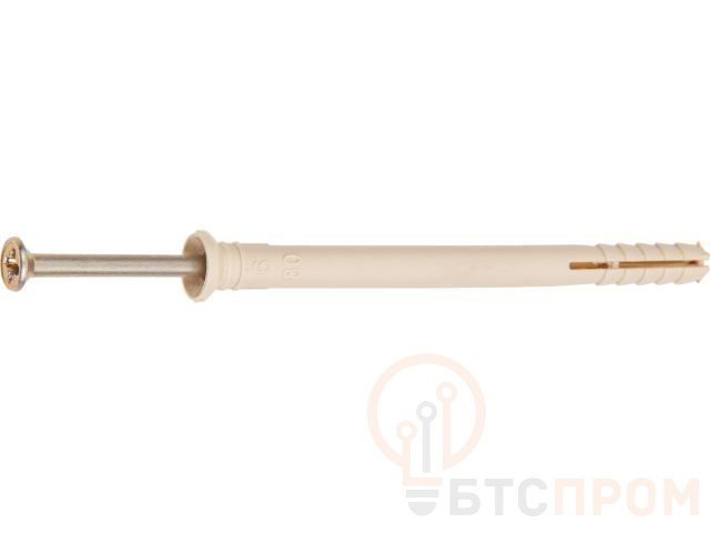 Особенности: для установки необходимо предварительно просверлить отверстие. Прочность крепежа достигается расклиниванием дюбеля в отверстии гвоздем в момент удара молотком. С помощью крестообразного шлица на головке гвоздя можно легко ослабить или усилить крепеж, демонтировать его. Дюбель-гвоздь с потайным бортиком устанавливается <заподлицо>, т.е. его шляпка утапливается, благодаря чему возможно производить крепежные работы без последующего выравнивания поверхности.