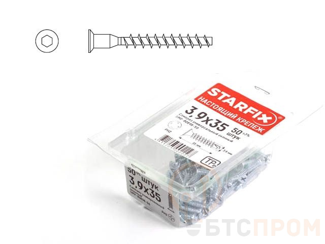Конфирмат 7.0х50 мм с внутр. шестигр. (30 шт в пласт. конт.) STARFIX SMP1-87324-30 фото в каталоге от BTSprom.by