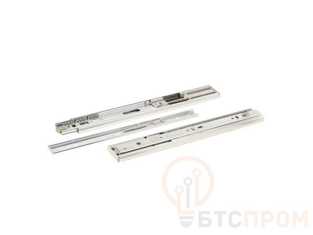 Эти направляющие имеют толщину стали 1.5 мм и рассчитаны на нагрузку 35 кг. Их телескопический механизм обеспечивает полный доступ к пространству ящика а их ход мягкий и бесшумный.