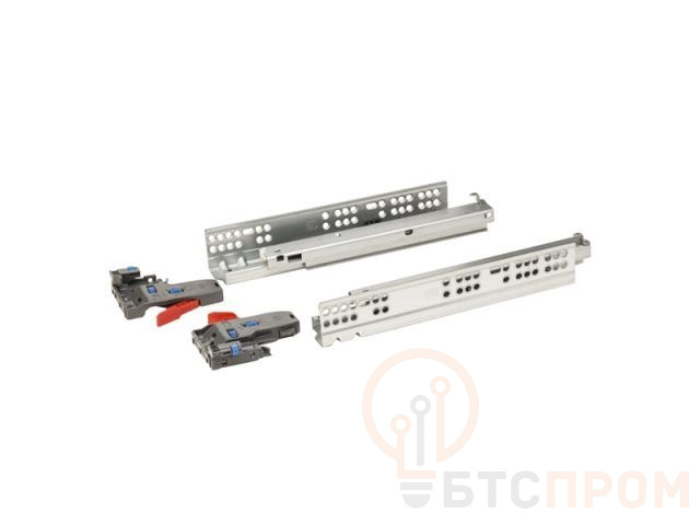 Направляющие скрытого монтажа полного выдвижения имеют квадратное сечение, благодаря чему жесткость таких направляющих значительно превышает жесткость простых шариковых направляющих. Их движение мягкое и плавное, все детали идеально подогнаны и при их выдвижении не возникает люфтов и фасад четко встает на свое место. Направляющие скрытого типа снабжены системой push to open, при помощи которй открывание происходит легким нажатием на фасад.