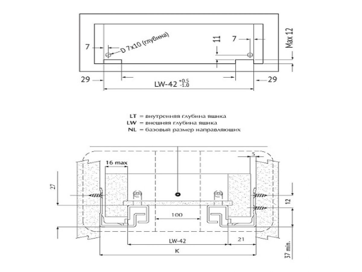 Направляющие скрытого монтажа полного выдвижения имеют квадратное сечение, благодаря чему жесткость таких направляющих значительно превышает жесткость простых шариковых направляющих. Их движение мягкое и плавное, все детали идеально подогнаны и при их выдвижении не возникает люфтов и фасад четко встает на свое место. Направляющие скрытого типа снабжены системой push to open, при помощи которй открывание происходит легким нажатием на фасад.