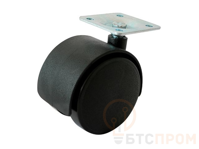 Мебельное колесо диаметром 50 мм, поворотное, на площадке. Предназначено для журнальных столиков, выкатных тумб под ТВ или другую аппаратуру. Площадка крепится саморезами.