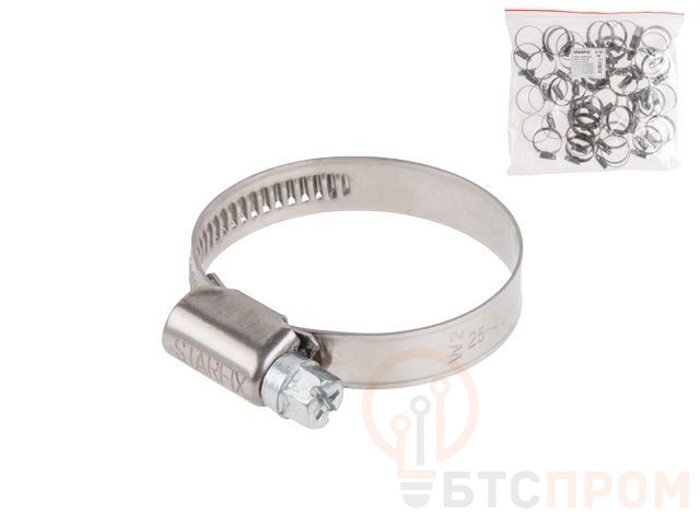 Хомут червячный 40-60 мм, нерж.сталь (W2) (25 шт в пакете) STARFIX SM-87992-25 фото в каталоге от BTSprom.by
