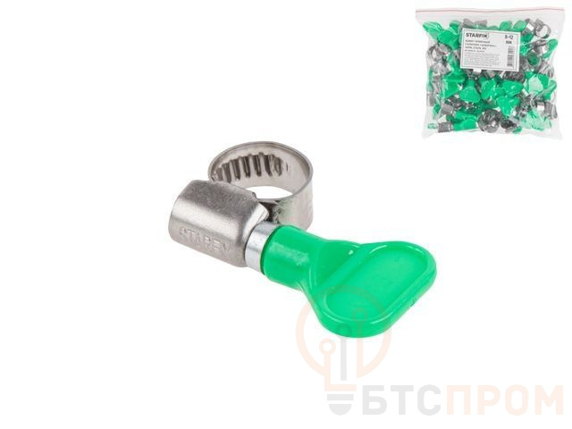 Хомут червячный с ключом "бабочка" 8-12 мм, нерж.сталь (W2) (50 шт в пакете) STARFIX SM-40099-50 фото в каталоге от BTSprom.by