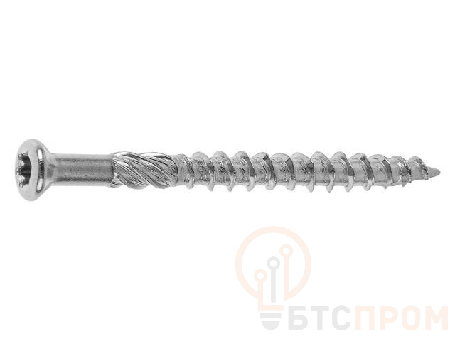 Специальная геометрия острия предотвращает раскалывание древесины и обеспечивает быстрое и легкое первоначальное вкручивание, а конструкция головки шурупа позволяет выполнять зенковку для более гладкой и незаметной посадки шурупа в скрепляемую поверхность.