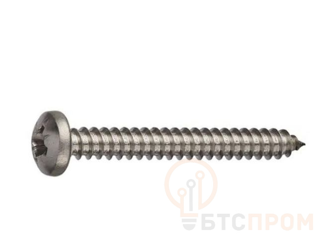 Ключевая особенность — материал изготовления: нержавеющая сталь марки А2. Это гарантирует исключительную коррозионную стойкость и долговечность соединения в условиях повышенной влажности, на улице и в агрессивных средах. Саморез соответствует стандарту DIN 7981, что подтверждает его качество и точность геометрии.