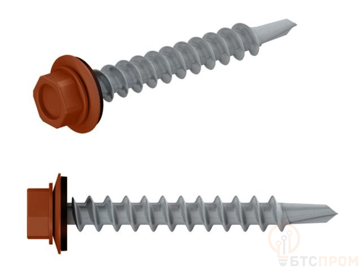 Саморез кровельный 4.8х29 мм цинк, шайба с прокл., PT1, RAL 8004 (200 шт в карт. уп.) STARFIX (по дереву, цвет медно-коричневый) SMC2-24695-200