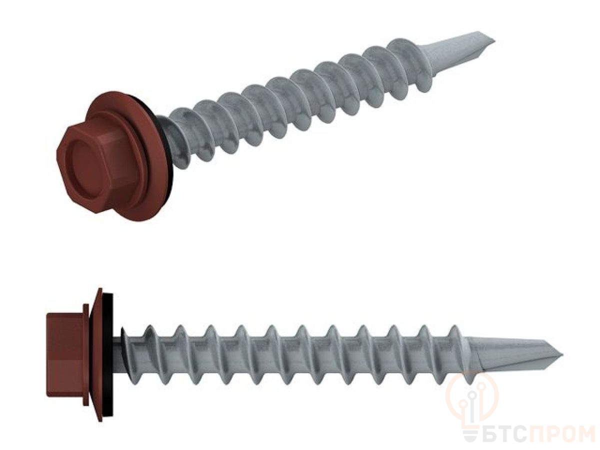Саморез кровельный 4.8х35 мм цинк, шайба с прокл., PT1, RAL 3009 (200 шт в карт. уп.) STARFIX (по дереву, цвет оксидно-красный) SMC2-21817-200