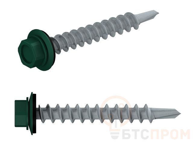 Саморез кровельный 4.8х70 мм цинк, шайба с прокл., PT1, RAL 6005 (100 шт в карт. уп.) STARFIX (по дереву, цвет зеленый мох) SMC3-65503-100