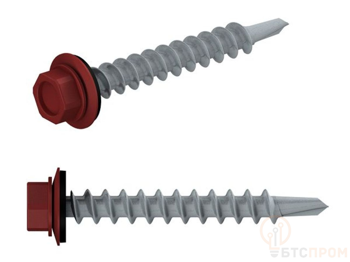 Саморез кровельный 4.8х29 мм цинк, шайба с прокл., PT1, RAL 3011 (5000 шт в коробе) STARFIX (по дереву, цвет коричнево-красный) SM-48696-5000