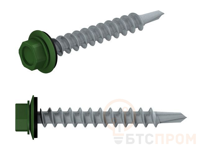 Саморез кровельный 4.8х35 мм цинк, шайба с прокл., PT1, RAL 6002 (70 шт в пласт. конт.) STARFIX (по дереву, цвет лиственно-зеленый) SMP2-95218-70