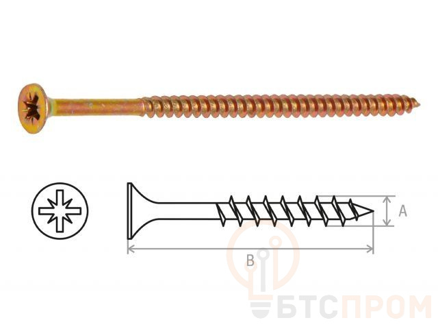 Используется для крепления различных конструкций к дереву, фанере, ДСП. Шуруп имеет потайную головку с крестообразным шлицем (PZ) и острый наконечник.