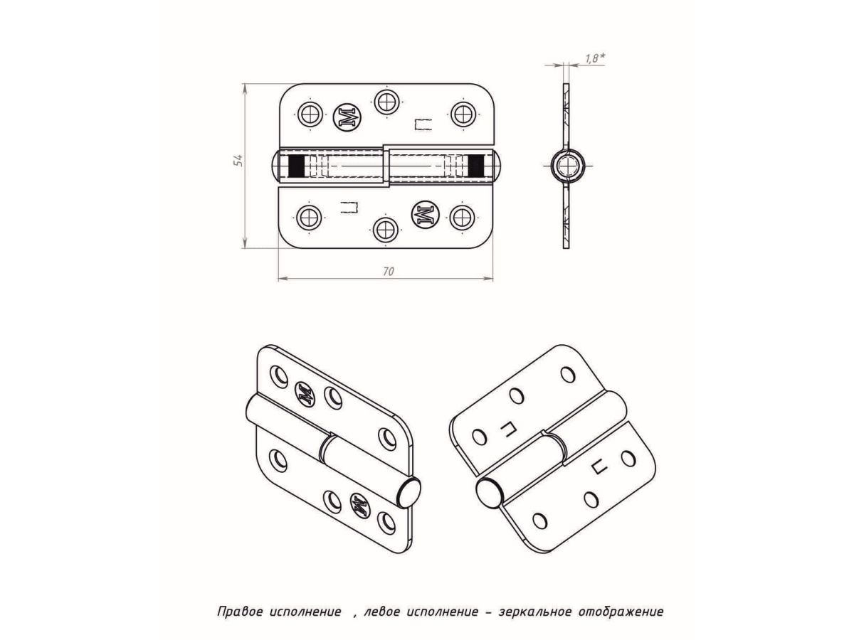 Петля позволяет прикрепить двери к дверному косяку, обеспечивая ее беспрепятственное открытиезакрытие. Отличается высокой прочностью. Без трудностей монтируется.