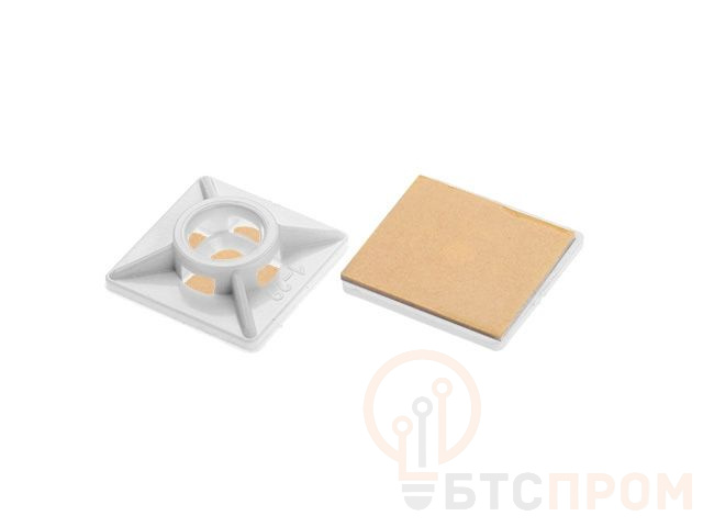 Используется для крепления кабельных хомутов на гладких поверхностях при помощи самоклеящегося основания площадки. При производстве наружных работ площадку к поверхности необходимо крепить винтом или шурупом, для чего в площадке предусмотрено отверстие. Выполняется из нейлона или полипропилена.