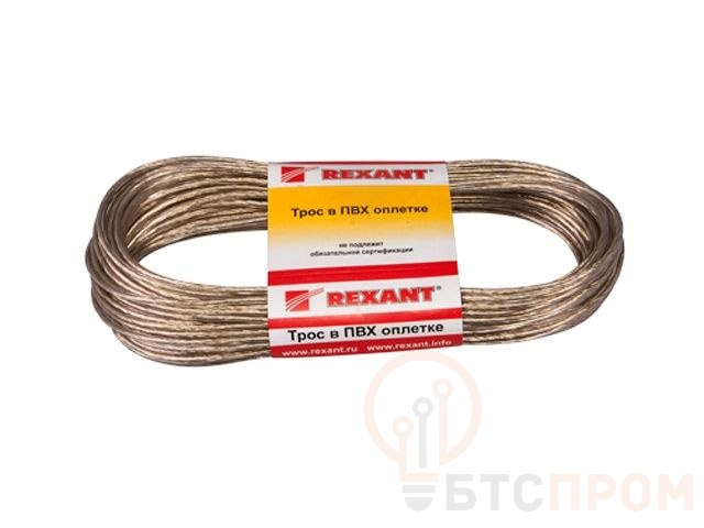 –Трос стальной в ПВХ оплетке d=2,5 мм, прозрачный ( моток 20 м) REXANT 09-5125