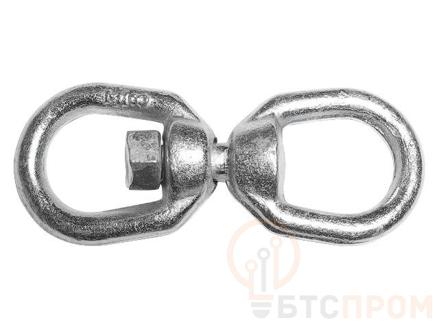 Вертлюг изготовлен из оцинкованной углеродистой стали и предназначен как соединительное звено между двумя тросами, цепями, позволяющее каждому из них вращаться вокруг своей оси. предотвращая их от скручивания.